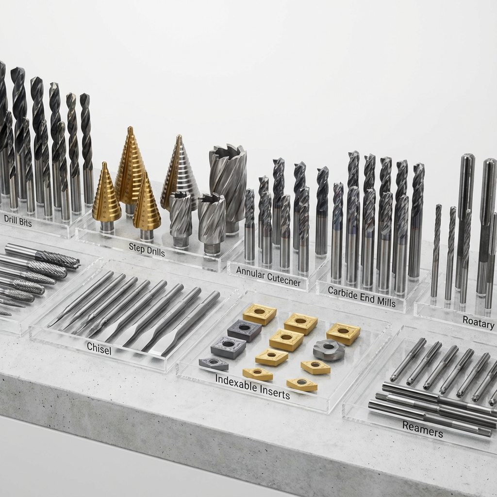 Brocas, Avellanadores, Cortadore anulares y de carburo, Limas rotativas, Buriles, Insertos, Rimas, etc.